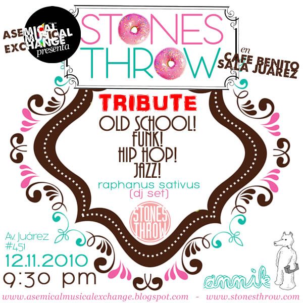 Eso y aun mas es de agradecerse; por ello mismo, este 12 de noviembre, en conjunto con Annik y gracias al Café Benito/Sala Juárez, haremos un tributo al sello de Madlib, Quasimoto, Breakestra, MF Doom, J Dilla, Dam Funk, J Rocc, entre otros, con una noche revuelta entre soul y funk arqueológicos, hip hop de alto nivel y jazz de revuelta.