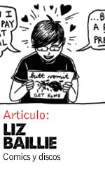 Liz Baillie es una ilustradora, artista y dibujante de tiras cómicas norteamericana. Neoyorkina de corazon, esta chica no murmura su propuesta, si no que la grita en cada minúscula linea de cada una de sus obras. Creadora del comic My Brain Hurts, cuyas paginas retratan la vida de punks homosexuales en NY, y de la hermosa tira semanal Freewheel, la cual edita desde su pagina y que (ambas) han sido reeditadas en formato físico por Microcosm Publishing. Cabe recalcar precisamente que Liz tiene un amor perdido en los acetatos. Principalmente los discos de punk y hardcore; y que como cualquier otro escritor de cómics, resaltaría en su trabajo.